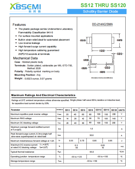 肖特基二極管SS16A規(guī)格書如下: